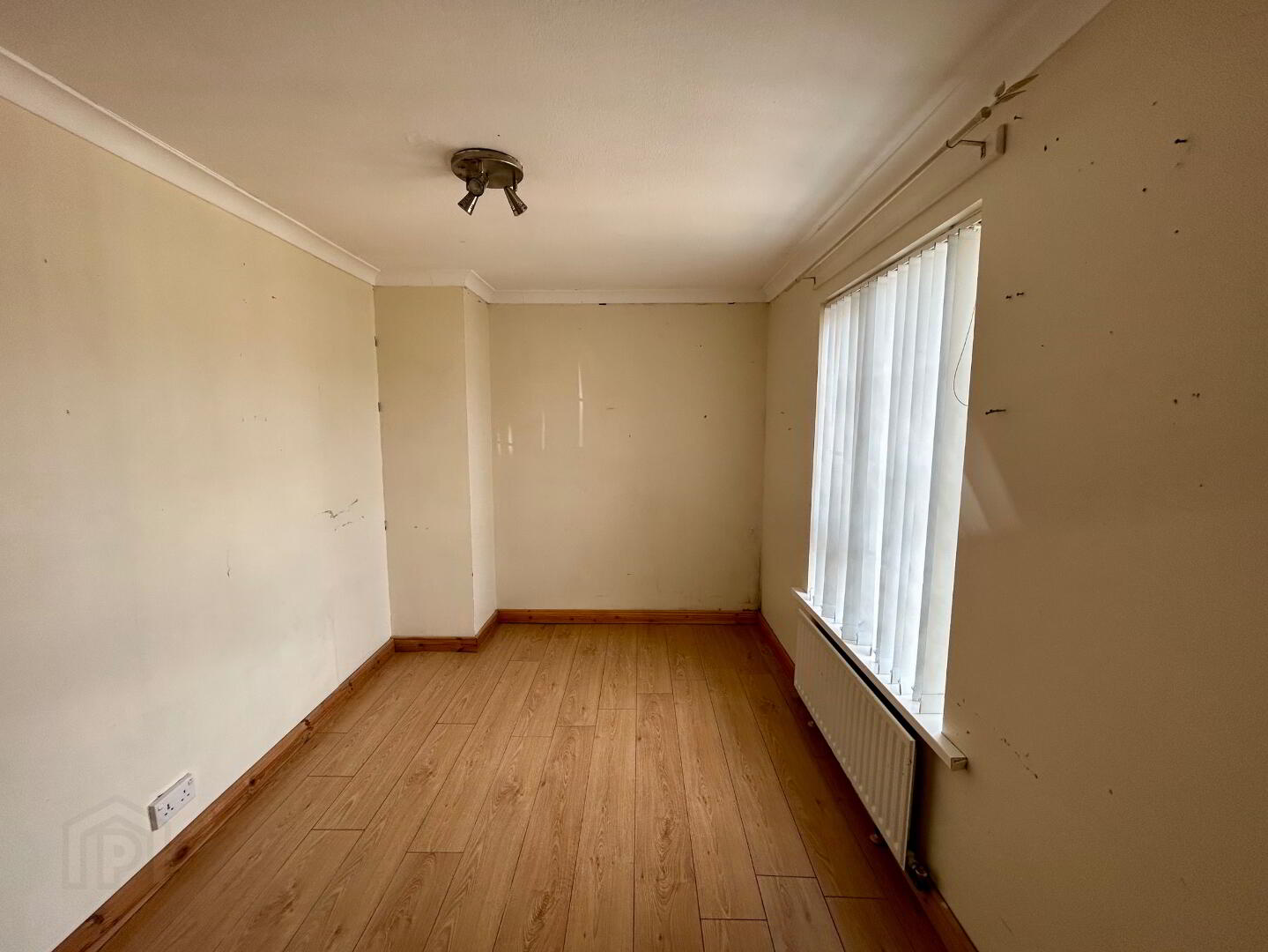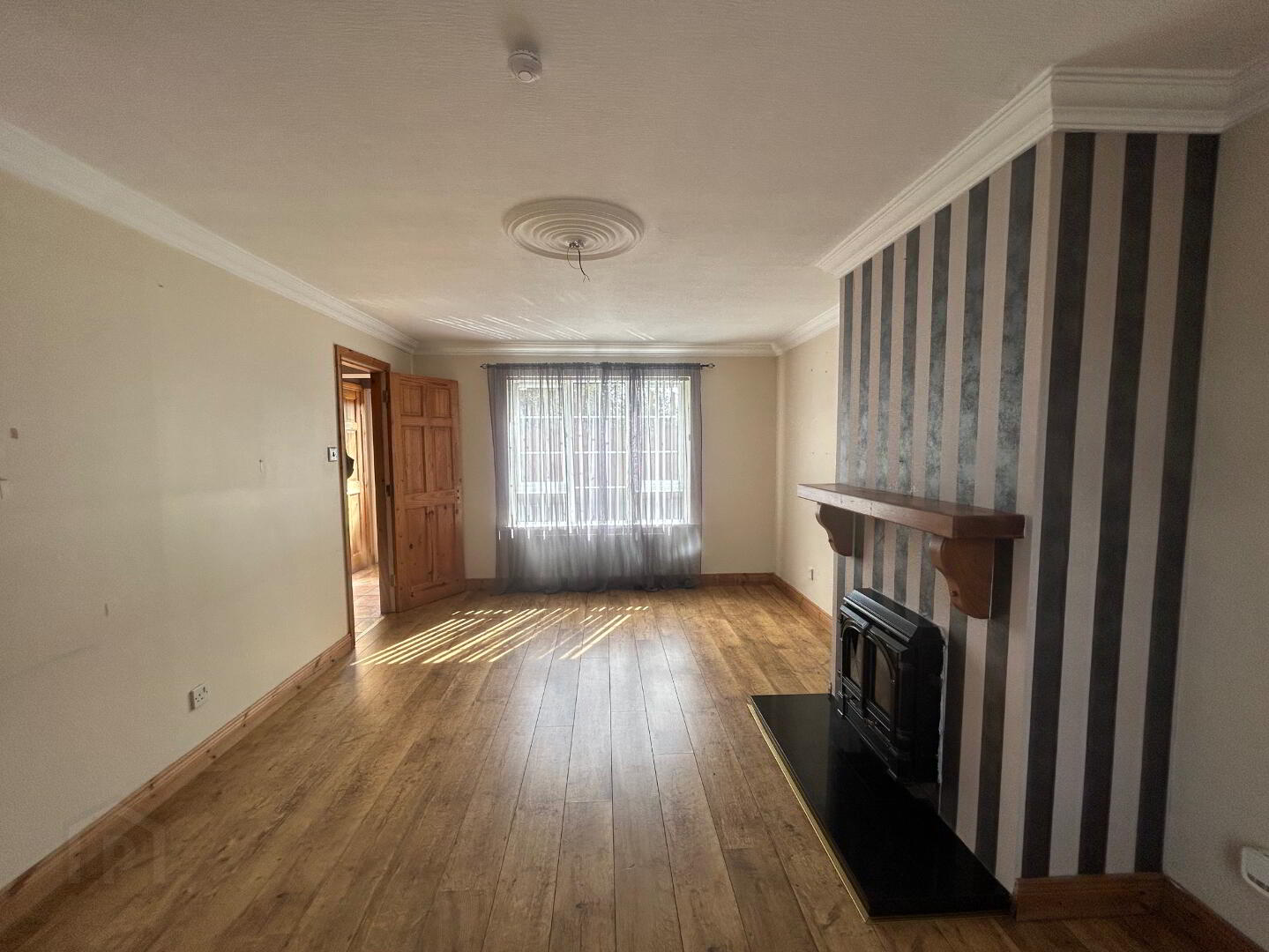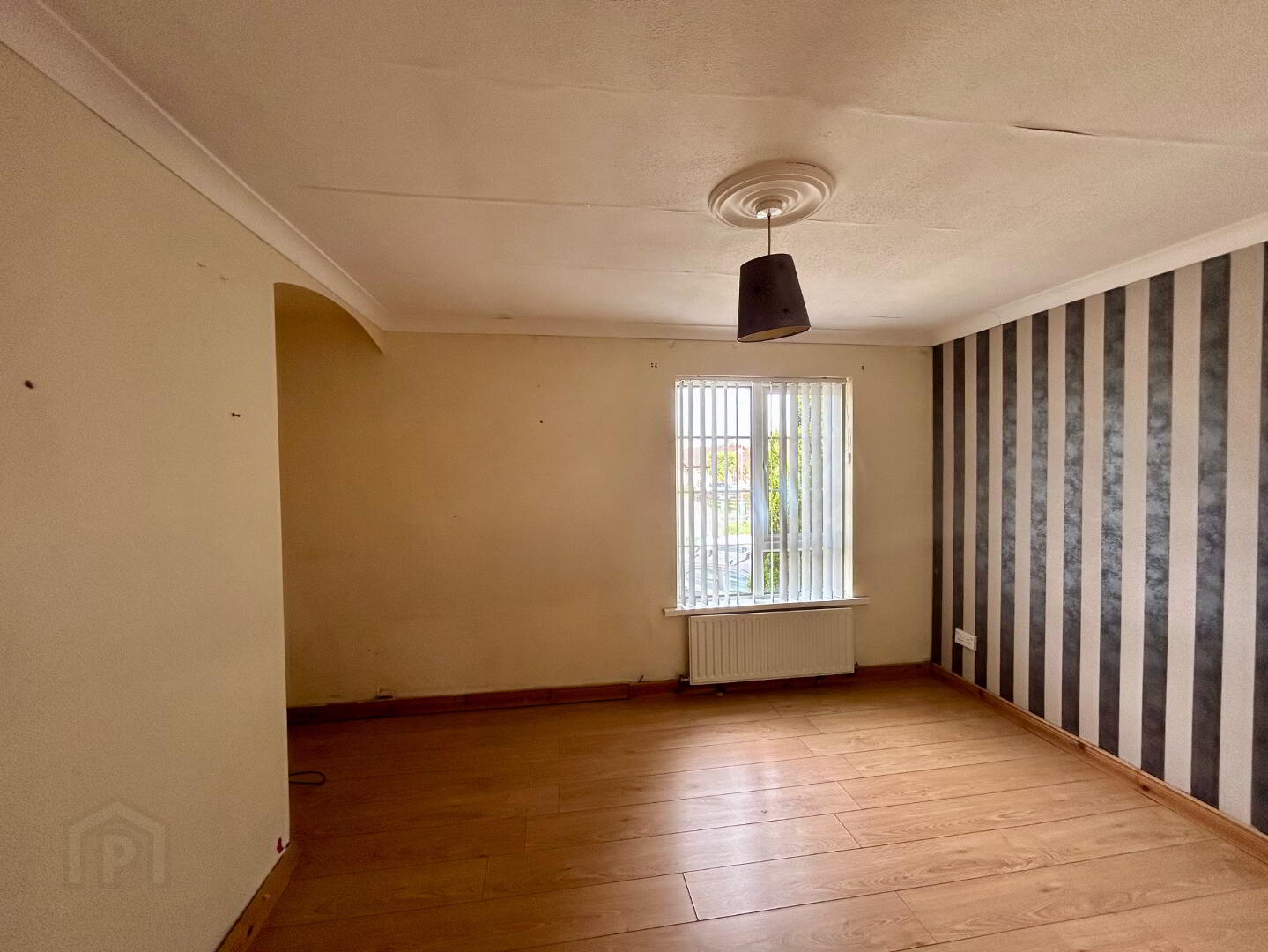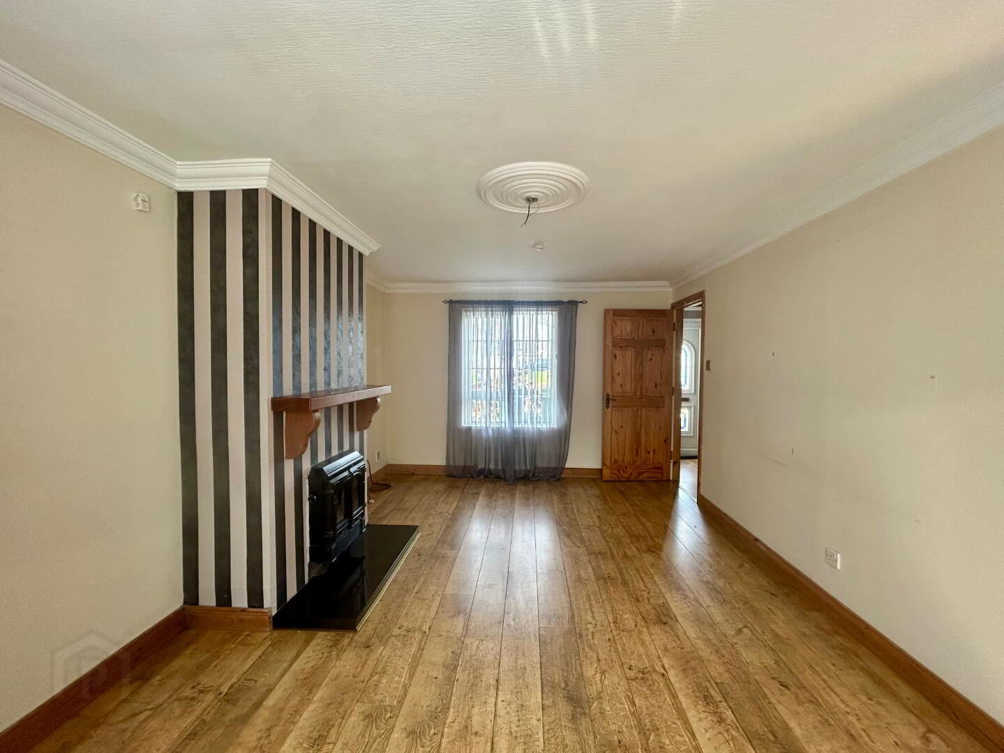 Double aspect windows, laminate flooring, fireplace