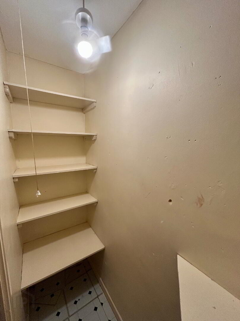 Wash hand basin, W.C, large storage cupboard